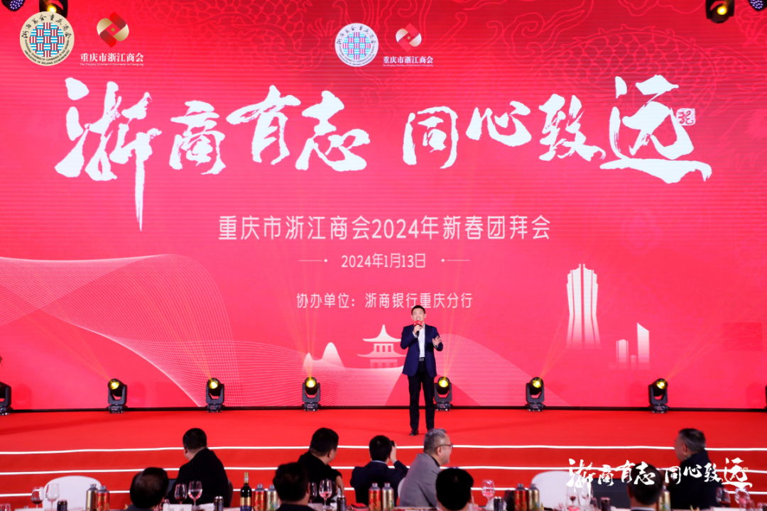 2024年1月13日下午,重庆市浙江商会全体会员大会暨2024年新春团拜会在重庆金科大酒店举行,九龙坡区受邀参加,区委副书记、区长李顺,副区长何渡,区政府办公室、区招商投资促进局主要负责人参加。600余名在渝浙商参加相关活动。