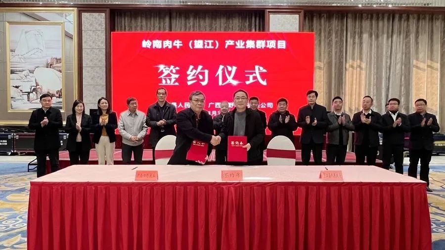 1月12日,望江县人民政府与广西四野牧业有限公司举行岭南肉牛(望江)产业集群项目签约仪式,中国农业大学动物科技学院教授、国家肉牛牦牛产业技术体系首席科学家曹兵海,省农业农村厅二级巡视员纵风云,市委副书记胡红兵,副市长周建春等出席签约仪式。