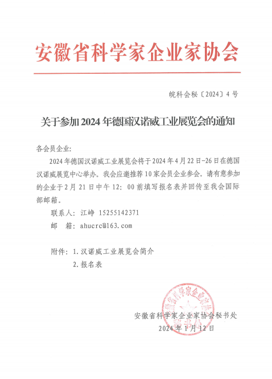 关注!关于参加德国汉诺威工业展览会的通知