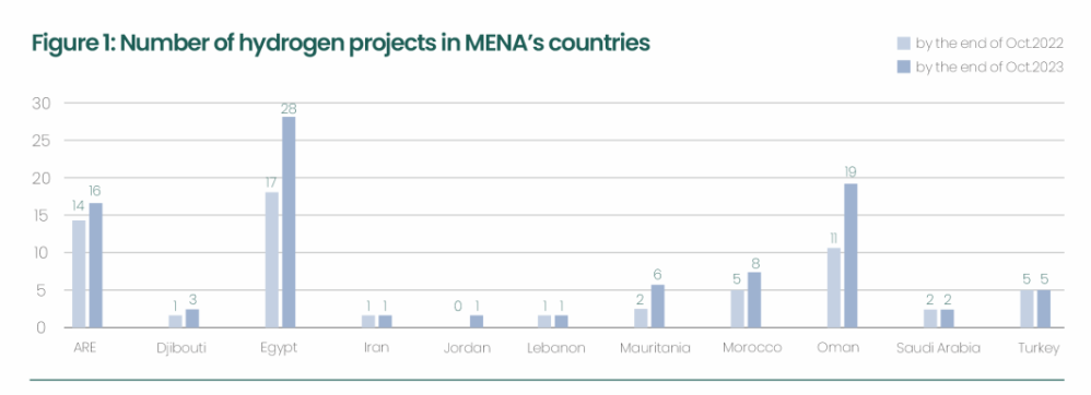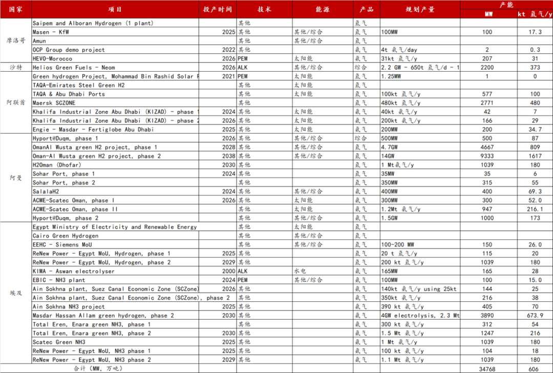 1.1.4 中东北非低碳氢项目大幅增长,中东绿氢绿氨项目产能超600万吨