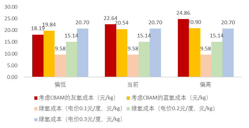 图:考虑CBAM的氢气生产成本测算(元/kg)