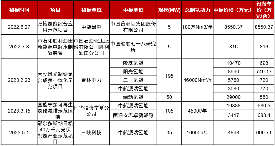 1.1.1 23年国内电解槽招标规模超过2GW,24年有望继续提升