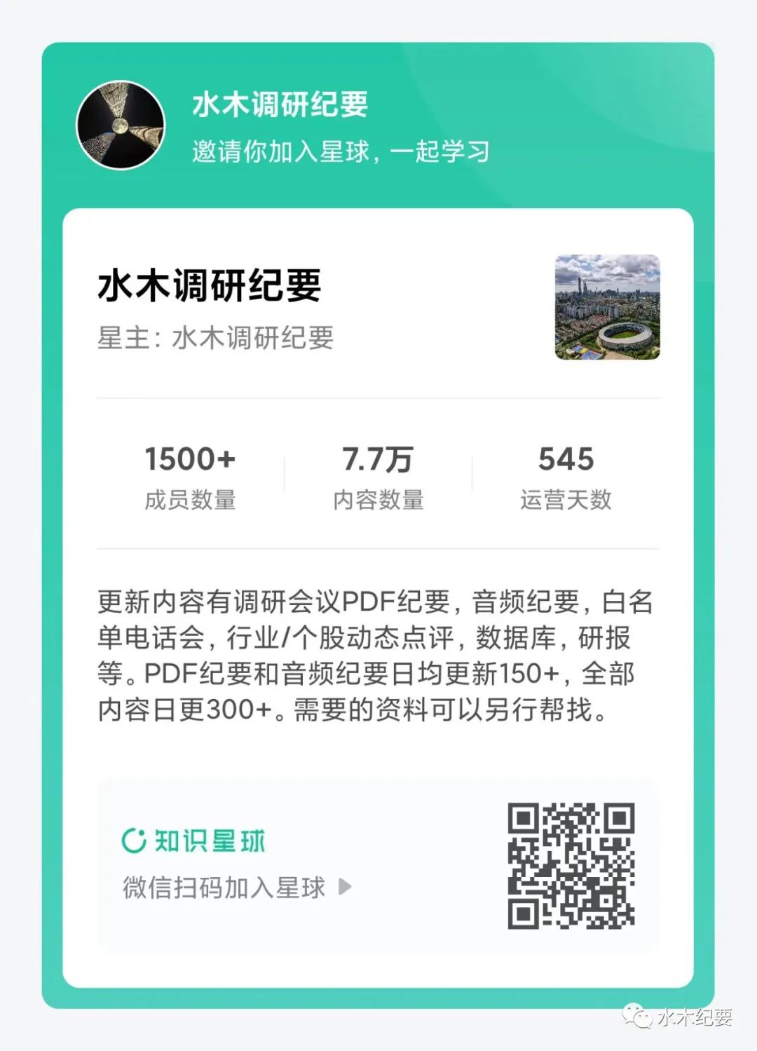 更多一手调研纪要和研报数据,扫描上面二维码获得