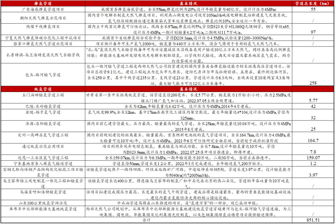 1.2.1 国内氢能管网建设提速,1868.5km管道项目有待放量