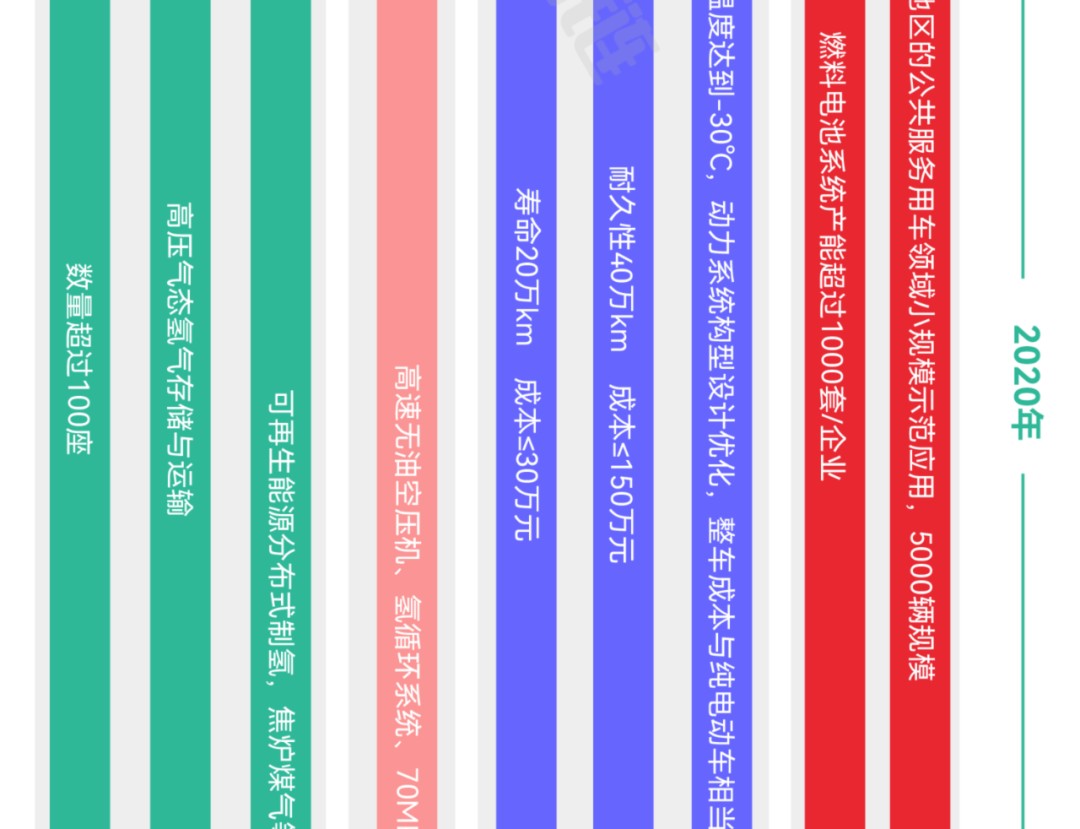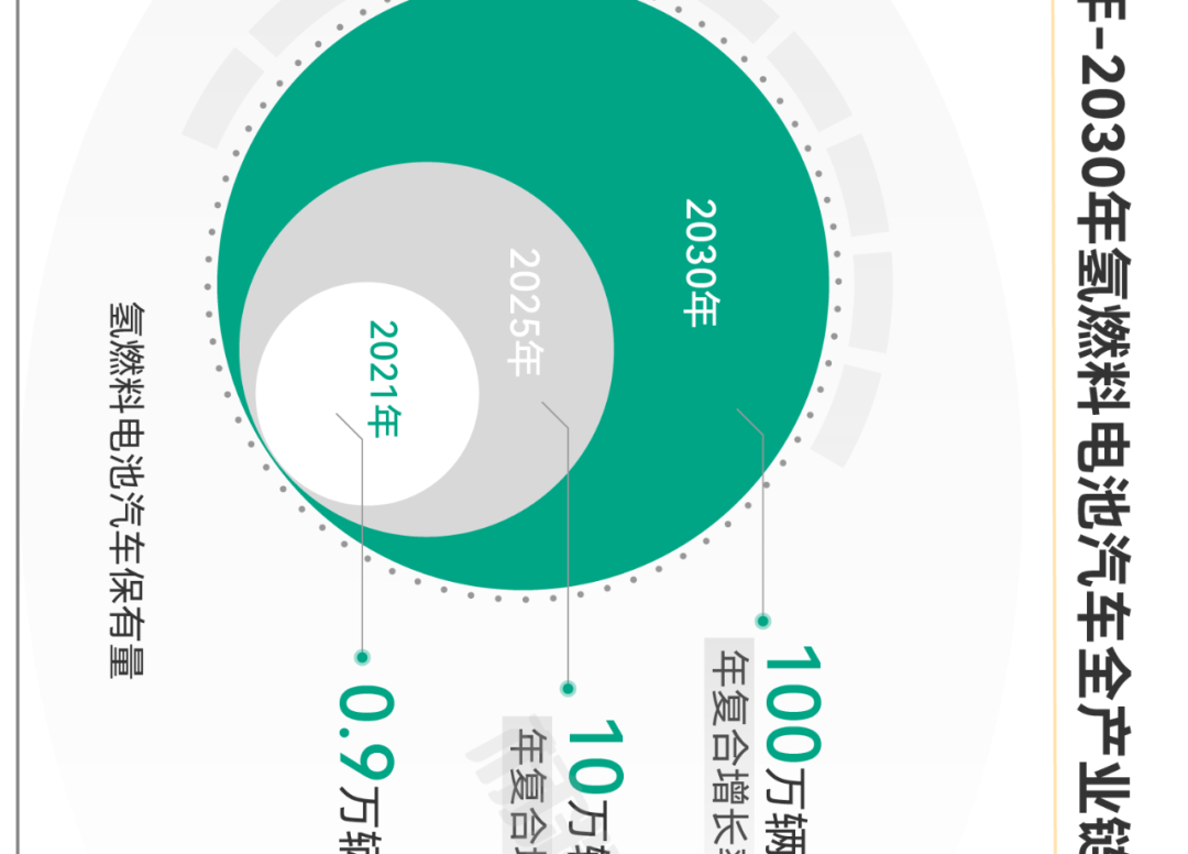 保有量约5万辆,部署建设一批加氢站,可再生能源制氢量达到10-20万吨/年,实现二氧化碳减排100-200万吨/年。