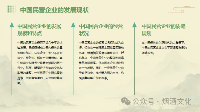中国的民营企业经过多年的发展,已经取得了显著的成就。这些企业活跃在各个行业,包括制造业、服务业、科技产业等,为国家经济的发展做出了巨大贡献。然而,随着全球经济形势的变化和国内政策的调整,民营企业的发展也面临着一些挑战,如融资难、市场竞争激烈、人才短缺等。