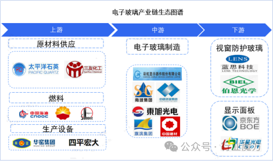 2、电子玻璃的上下游产业链上的公司生态