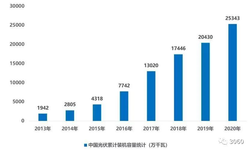 图 | 中国光伏累计装机量(2013-2020 年),来源:国家能源局