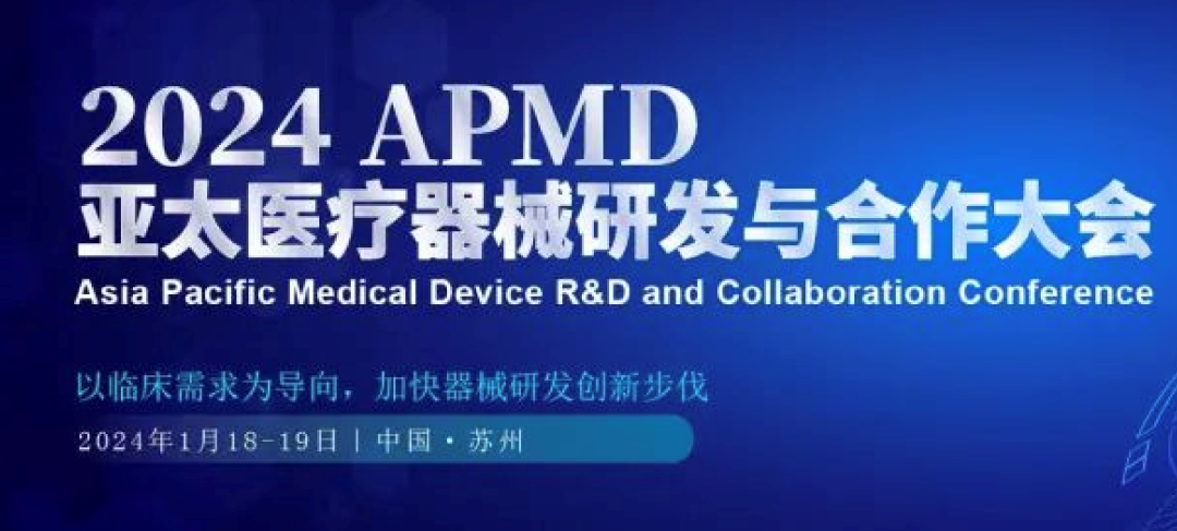 2024 APMD 亚太医疗器械研发与合作大会作为聚焦医疗器械研发创新的高端峰会,定于 2024 年 1月 18-19 日在苏州盛大召开。我们将重点展示医疗器械产业的最新成果和突破,聚焦创新医疗器械差异化开发,致力于提升器械临床开发效率,加快医疗器械创新出海步伐,推动数字化赋能医疗器械研发创新,深度探索高端医疗器械行业的未来发展新方向;同时,我们也会邀请来自全球的最前沿技术的医疗器械企业参与,分享各自国家和地区的先进技术和成功案例,积极寻求更多全球合作新机遇。