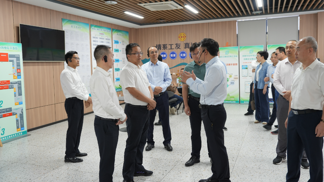 省总工会副主席施科(左三)率全省工会系统观摩团莅临江楠基地观摩指导