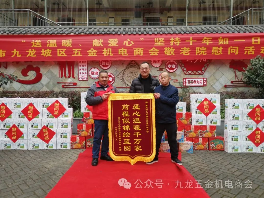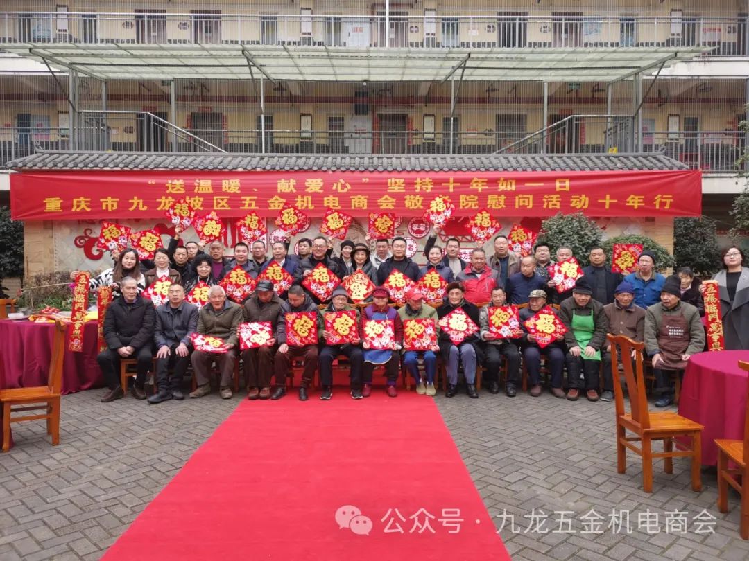 为弘扬中华民族敬老、爱老、助老的传统美德,2024年1月13日,春节即将到来之际,九龙坡区五金机电商会代表30余人到白市驿敬老院开展“送温暖、献爱心”慰问活动十年行。