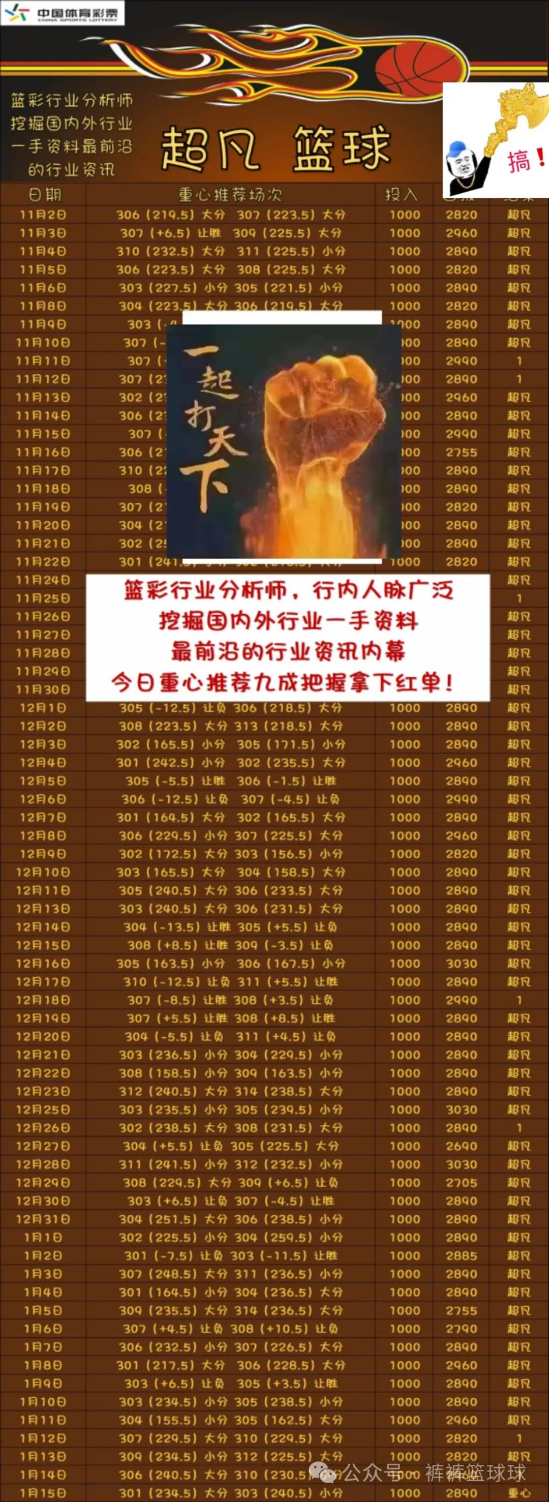 超凡篮球篮彩行业分析师擅长挖掘国内外行业一手资料最前沿的资讯内幕,今天重心推荐,九成把握拿下红单跟单联系我!