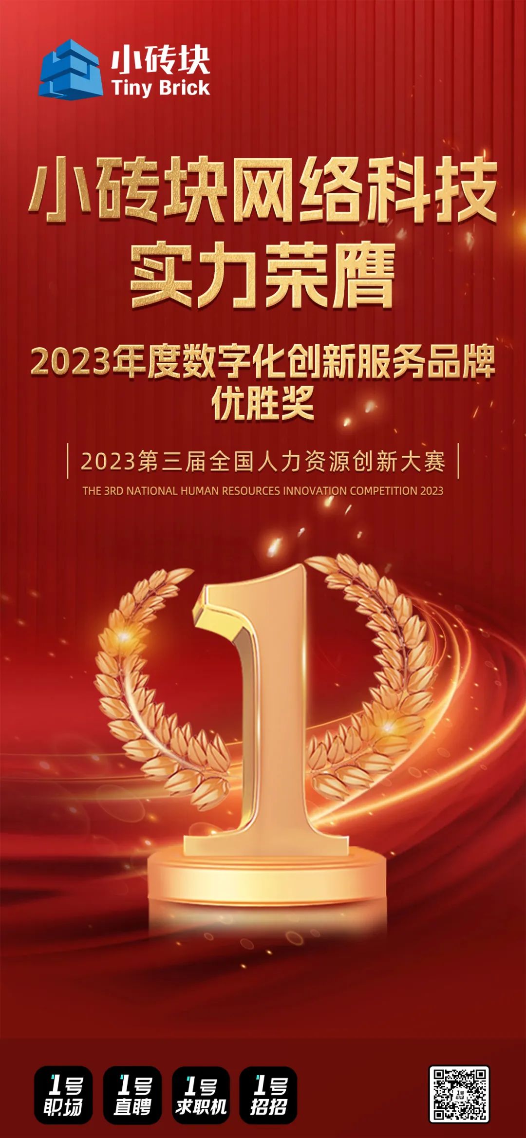 2024年1月11日,第三届全国人力资源创新大赛发布榜单。上海小砖块网络科技有限公司(以下简称“小砖块”)以卓越的数字化创新实践以及丰富的人力资源服务经验,荣膺“2023年度数字化创新服务品牌优胜奖”。