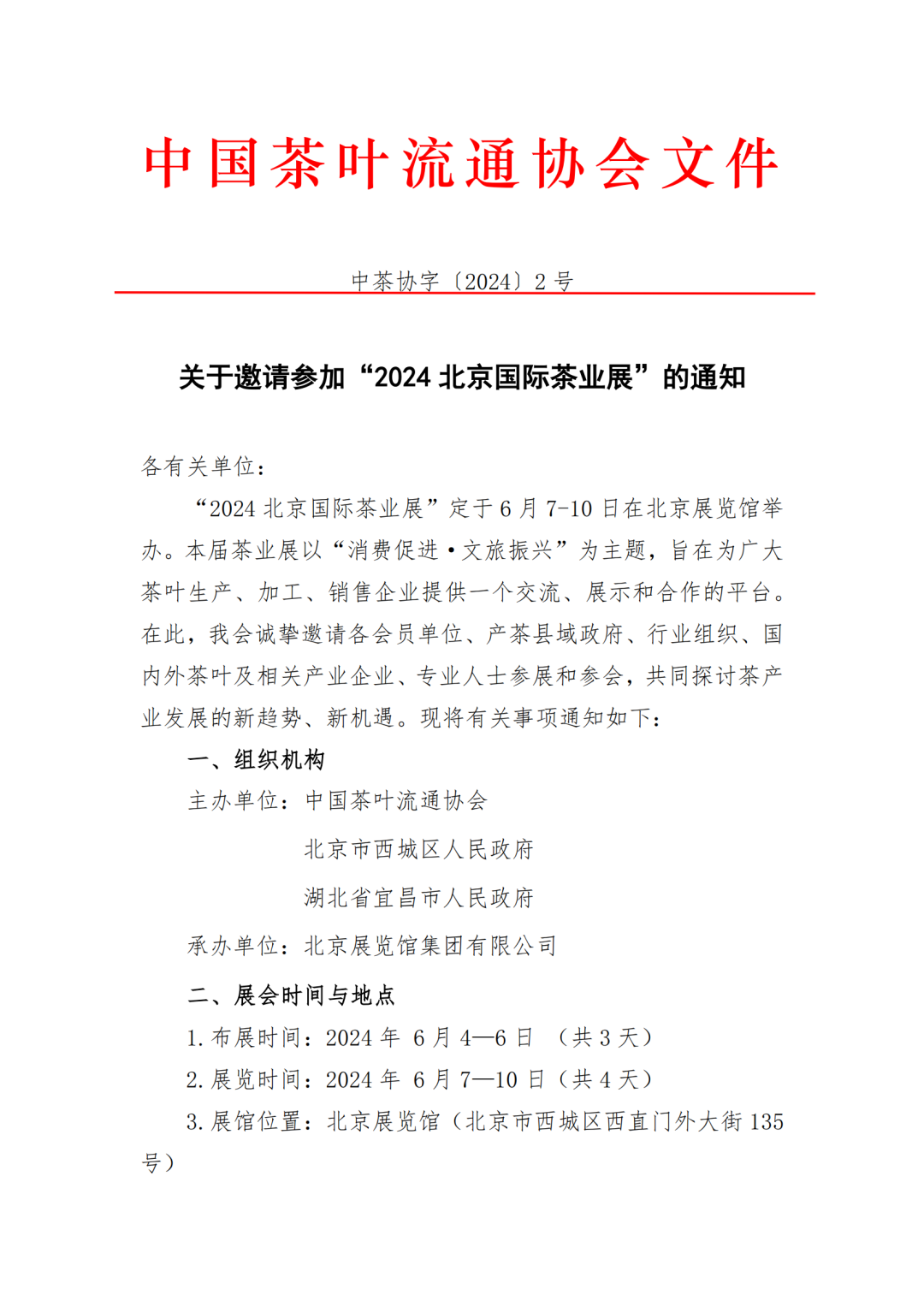 【展会预告】关于邀请参加“2024北京国际茶业展”的通知