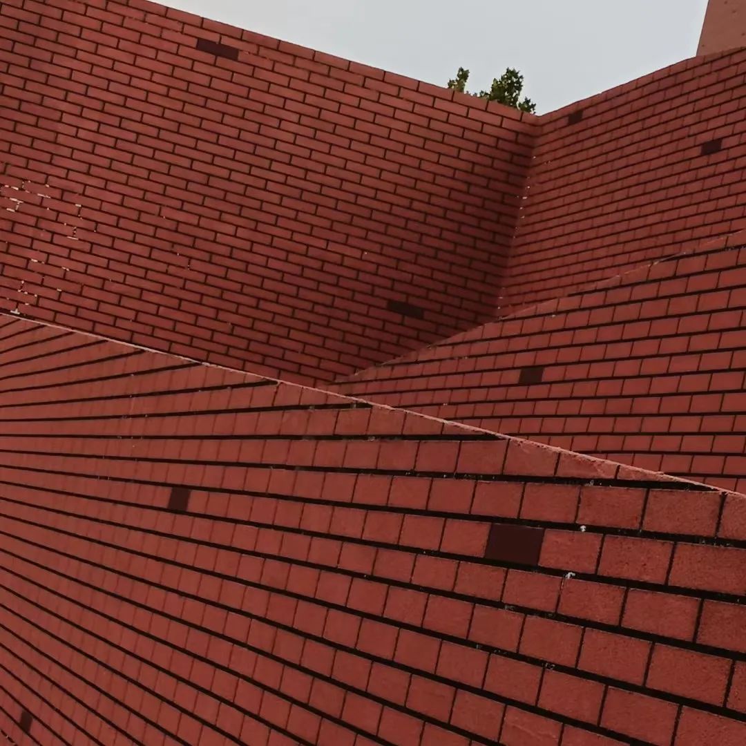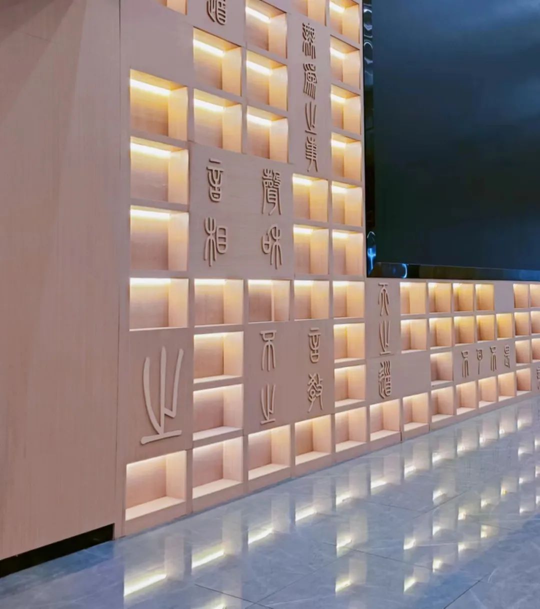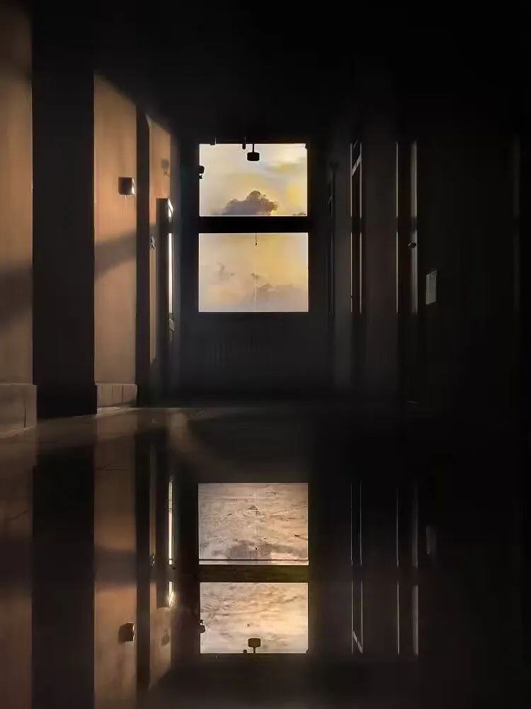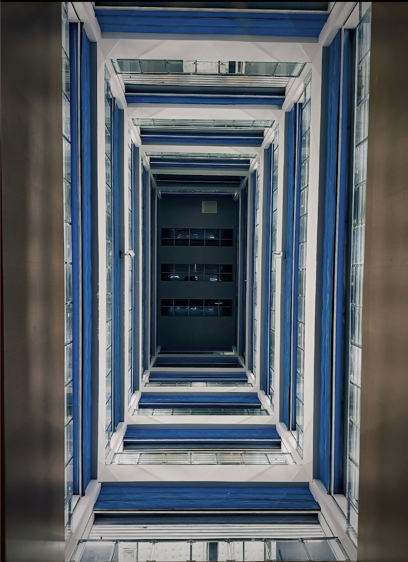 从图书馆一层抬头看天顶,在层叠的四方框中,莫名能感受到一种宁静。