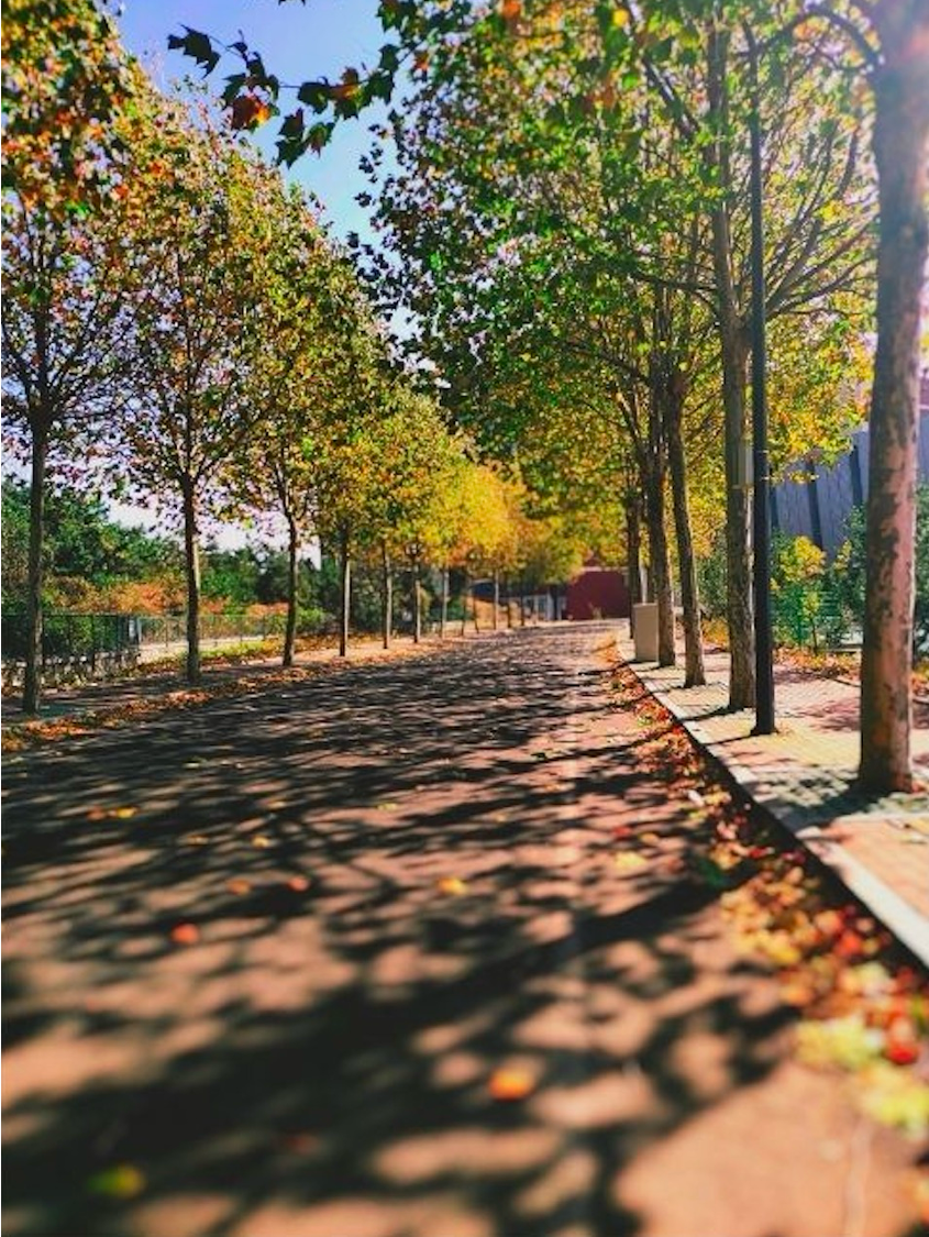 这是每天通向教室的必经之路,阳光透过树叶的缝隙,斑驳陆离地洒在地面上,陪伴我度过了许多难忘的时光,这条光影交错的林荫路将是我心中永恒的记忆和期盼。