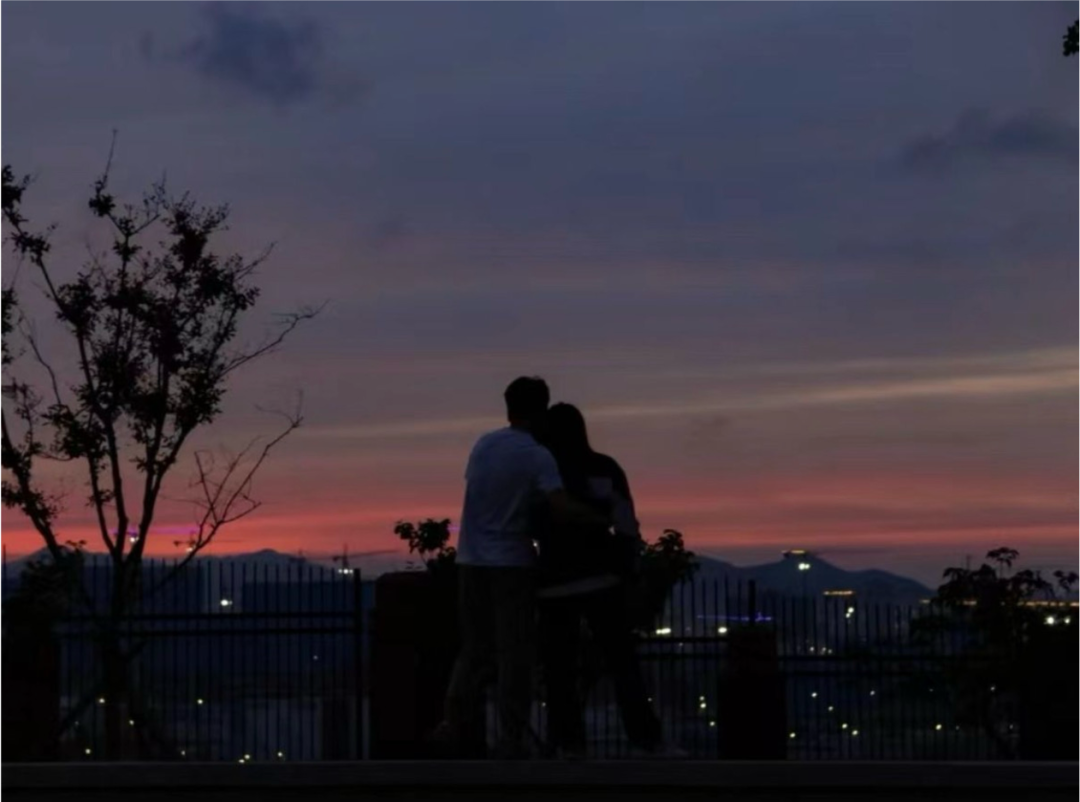 这里就像我家的楼顶一样,和家人打电话,很有归属感