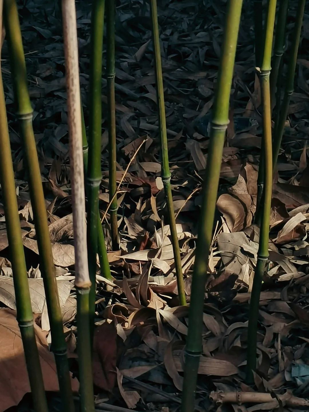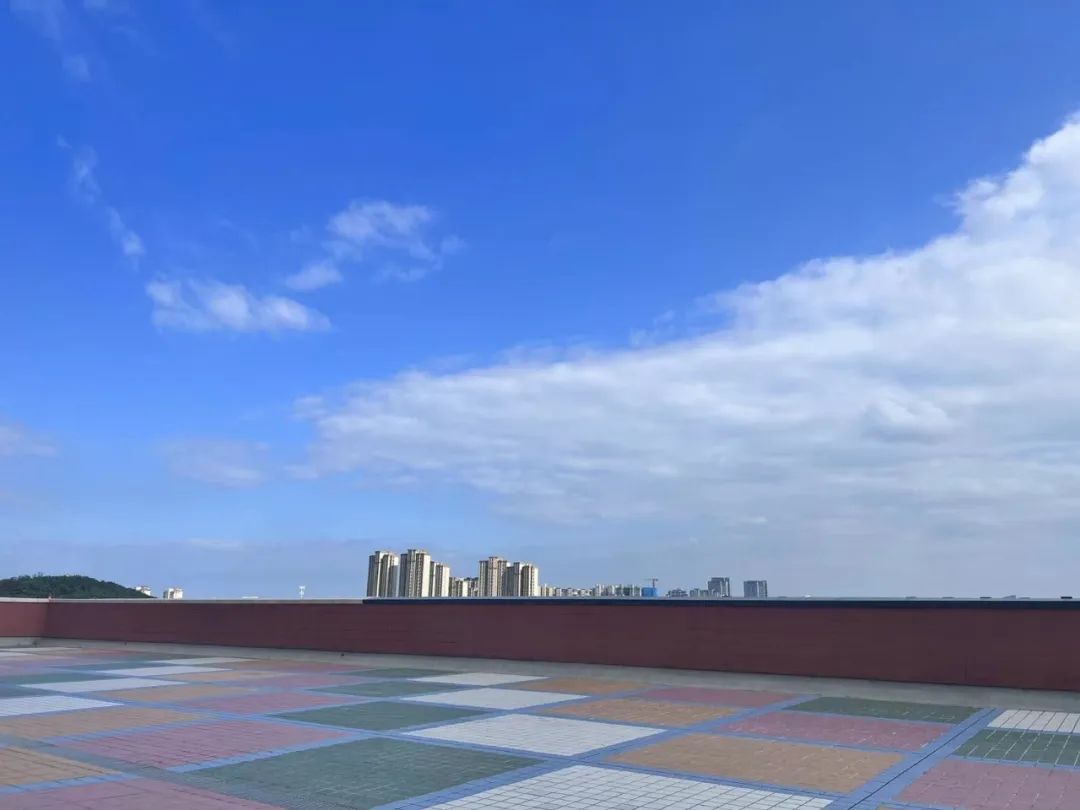 教学楼中庭有一片小竹林,四季常青,增添了一抹绿色,坐在刷有红漆的石凳上,近距离感受自然的拥抱,令人心情舒爽。