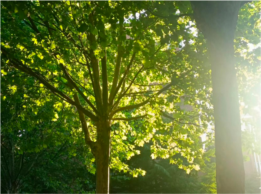 每次通过教室的窗户看到阳光从树叶缝隙中射下来,透过光呼吸,我的心脏疯狂地跳动着,感受到自己的生命力。