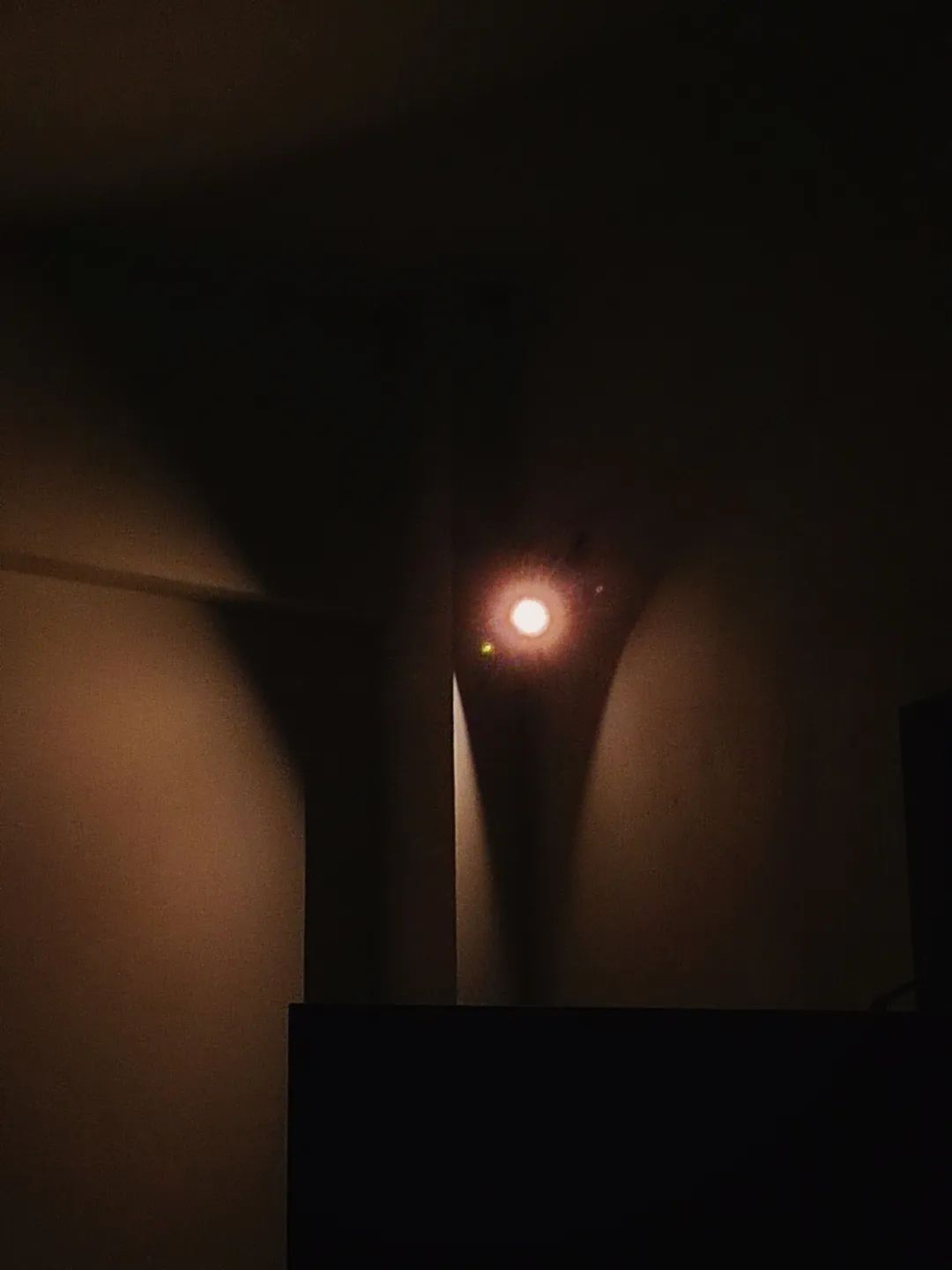 周一晚上七点去上电影课,爬到三楼时,在黑暗中看见灯泡颤颤巍巍发出一点昏暗的光,于是借拍照的机会休息片刻。