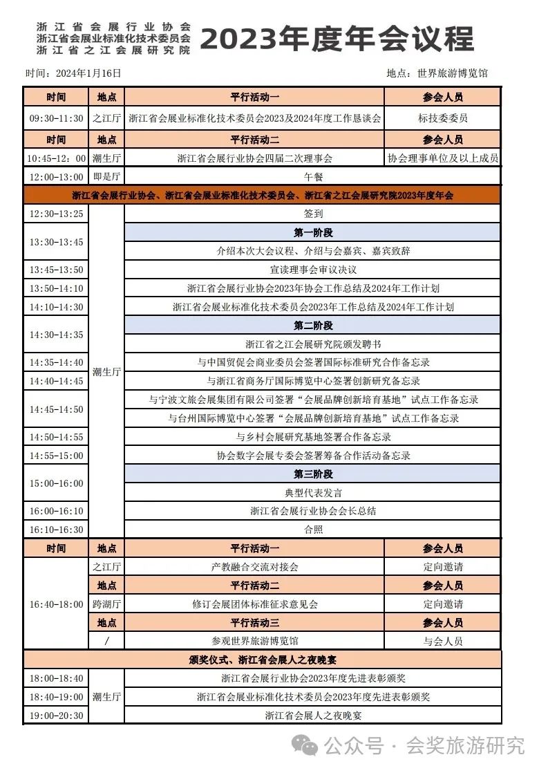 浙江省会展行业协会|浙江省会展业标准化技术委员会|浙江省之江会展研究会2023年度年会议程