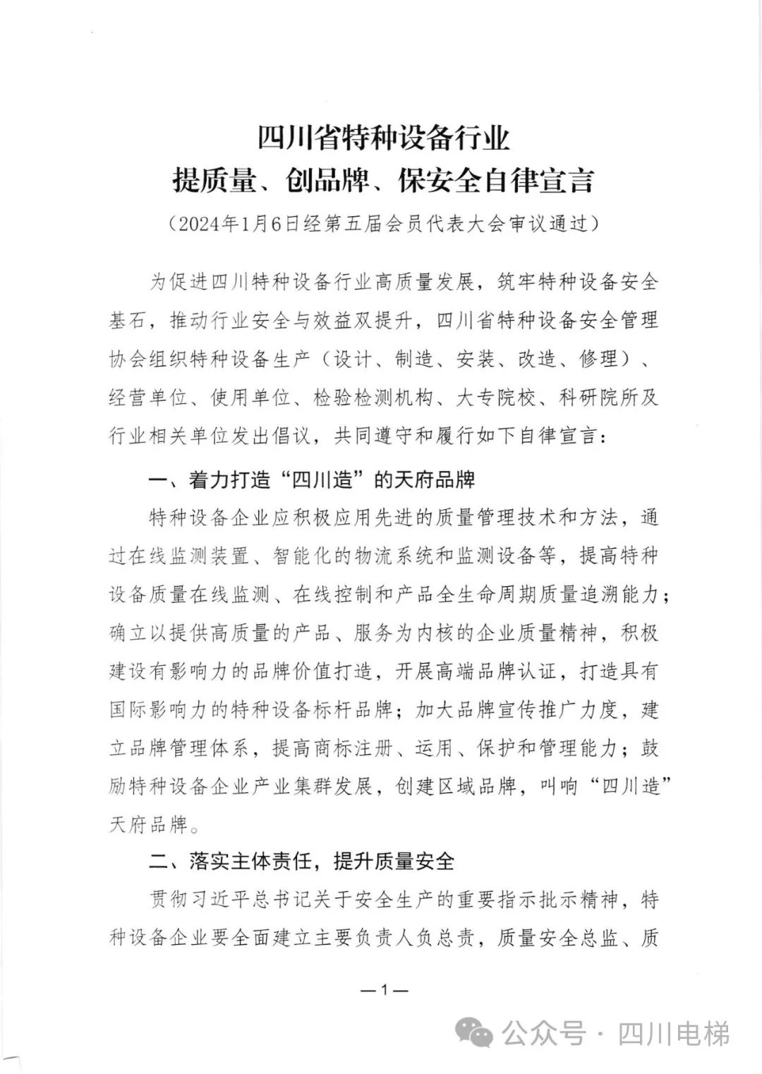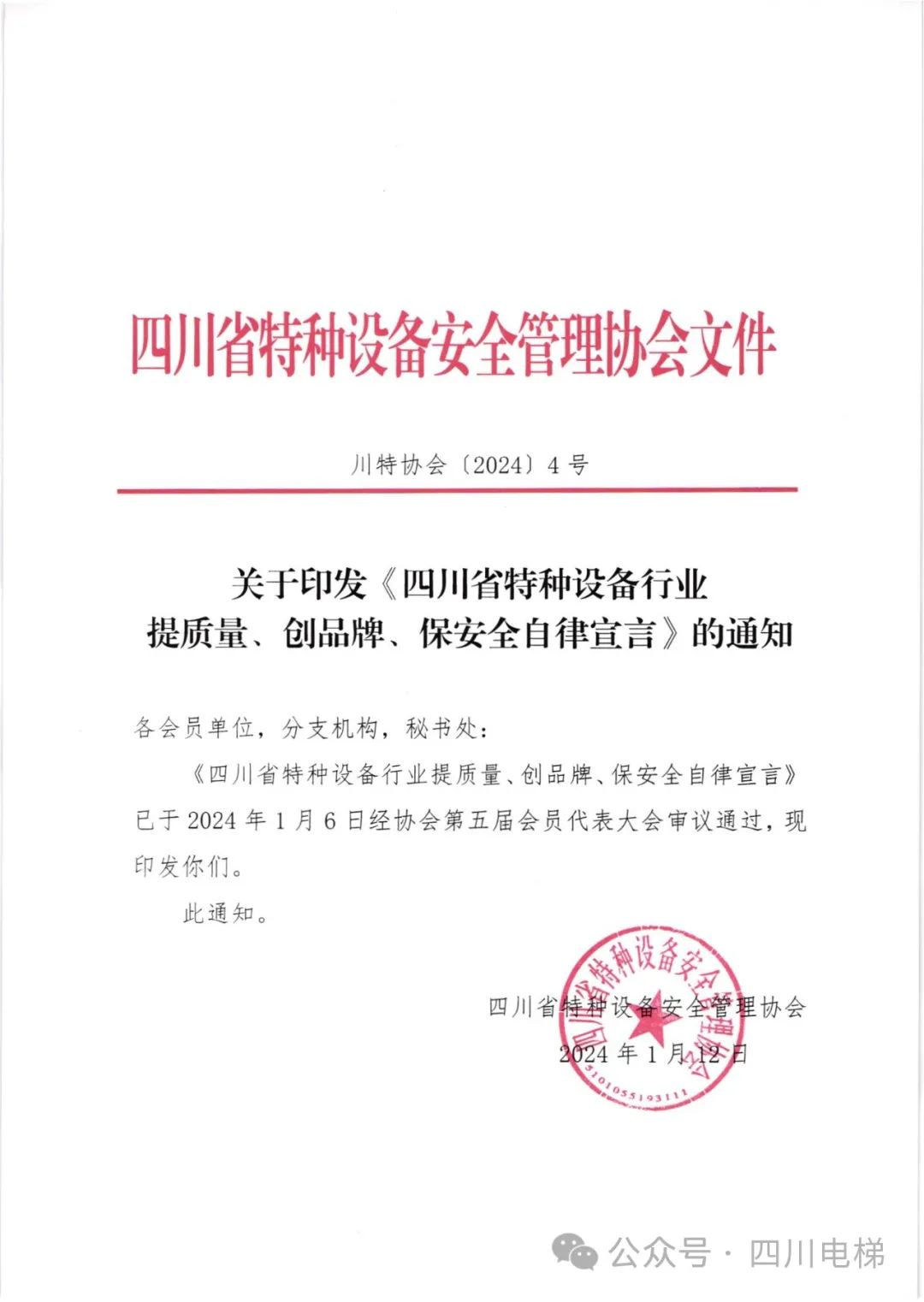 省特安协会关于印发 《四川省特种设备行业提质量、创品牌、保安全自律宣言》的通知