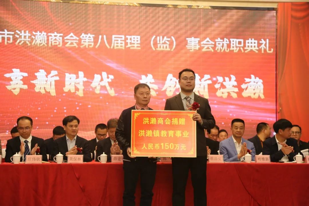 洪濑商会为洪濑镇教育事业捐赠人民币150万元。
