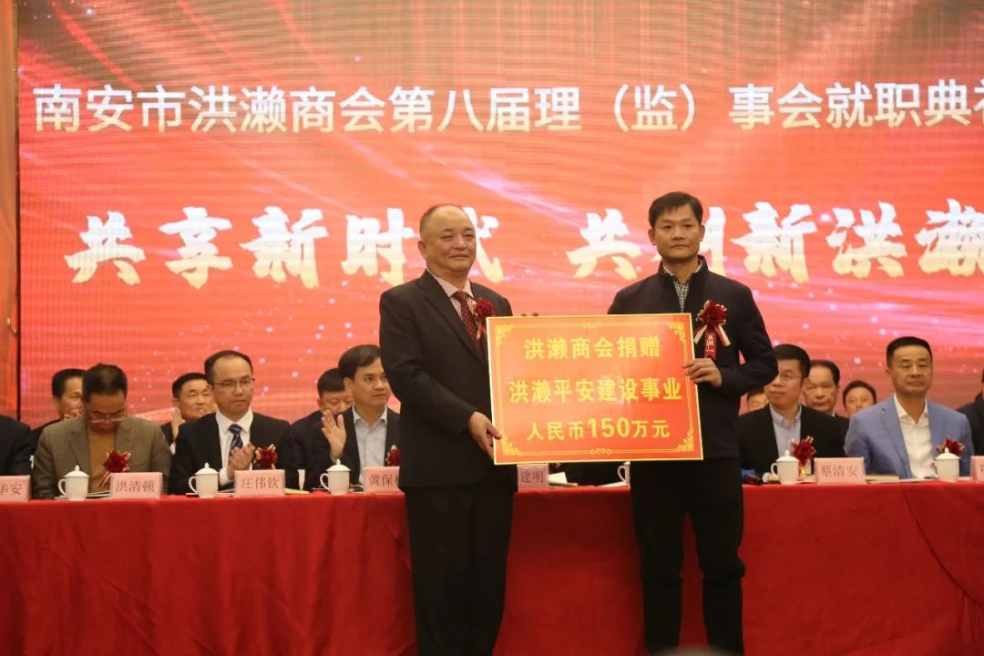洪濑商会为洪濑平安建设事业捐赠人民币150万元。