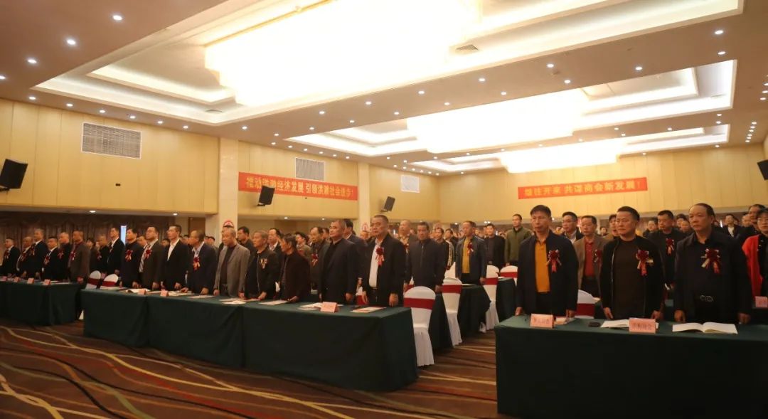 南安市洪濑商会第八届理(监)事会就职典礼在国歌中拉开帷幕,全体与会人员起立,奏唱国歌。