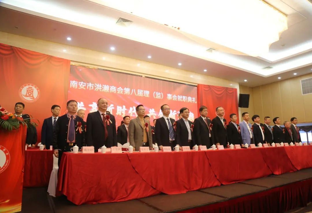 南安市委常委、统战部部长蔡清安受南安市委书记张桂森、市长王连赞委托,代表南安市委、市政府向商会表示热烈的祝贺,希望洪濑商会以党建促会建,领航商会行稳致远;重学习促创新,引领商会永葆活力;聚主业重服务,带领商会服务大局,相信在大家的共同努力下,洪濑商会一定能够“共享新时代、共创新洪濑”。