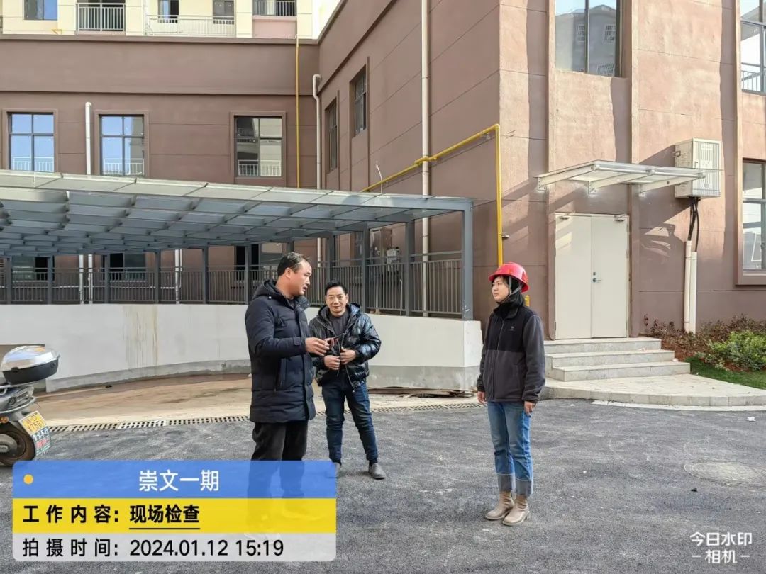 12日下午,肖玉婷到崇文一期工程现场检查,要求施工单位抓紧做好交房前准备工作。