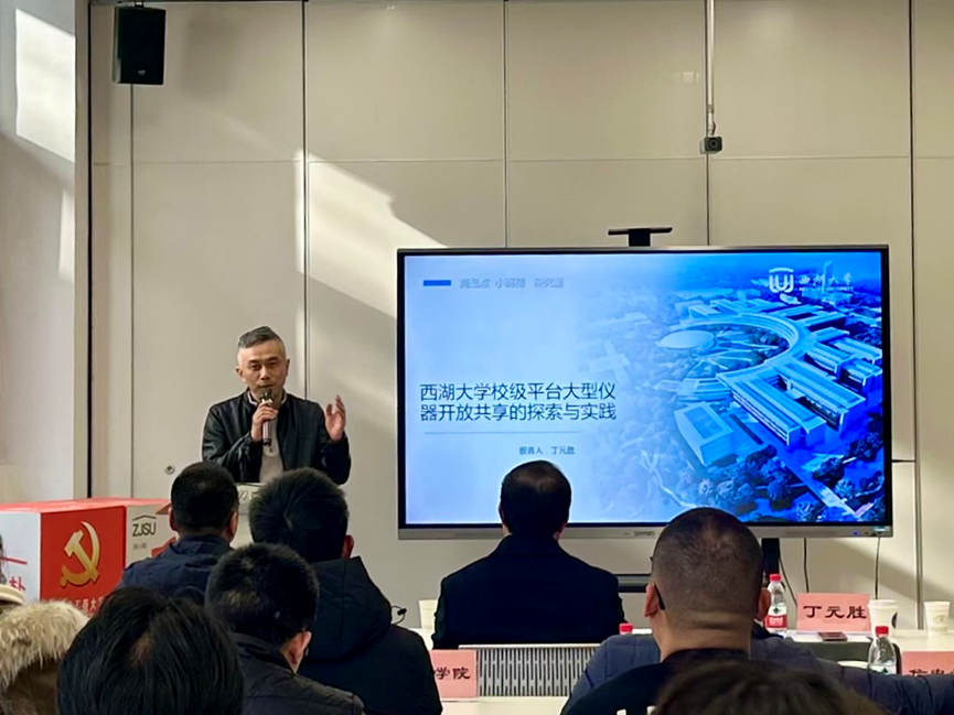 丁元胜以《西湖大学校级平台大型仪器开放共享的探索与实践》为题,从公共共享平台的建设目标、运行管理机制、服务内容方向以及人才队伍建设和评价体系等五个维度分享了西湖大学的仪器开放共享经验。