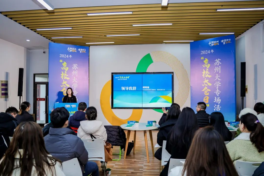 ➤“高校太仓日”苏州大学专场活动举办。现场,太仓市进行创新创业环境推介,并围绕太仓高新区重点产业,向重点骨干企业、国有企业、领军人才企业、科技型企业广泛征集招聘岗位需求,共计发布了10大项目,包含4个科技研发类项目和6个文化创意类项目。