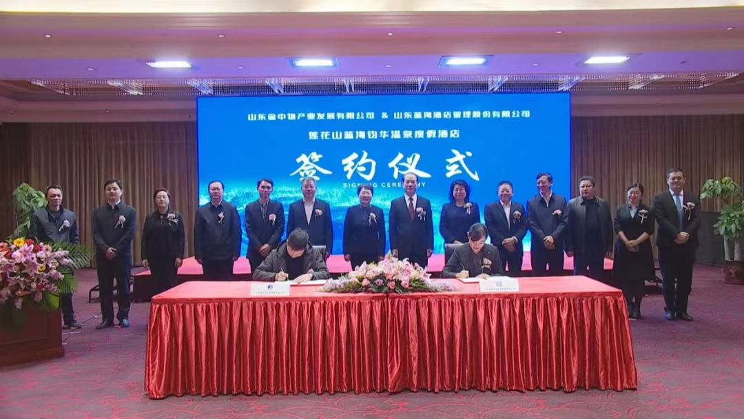 山东省中物产业发展有限公司 山东蓝海酒店管理股份公司 举行莲花山温泉度假酒店入驻托管运营合作签约仪式