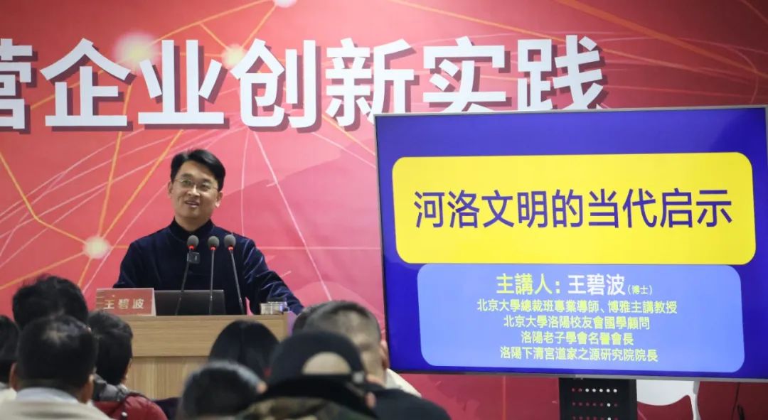 2024年1月15日下午,为了深入探讨河洛文化根脉传承与洛阳民营企业创新实践的内在联系,激发民营企业的创新活力,《河洛文化根脉传承与洛阳民营企业创新实践》主题讲座在洛阳剧本产业园如期举行。活动现场座无虚席,大家共同聆听这场关于文化传承与创新的盛宴。本次讲座由洛阳市民营经济促进发展中心、北京草堂典籍智库书院指导,企业家读书促进会、洛阳北大校友会主办,市总商会、洛阳市民营企业协会协办,洛阳卓阳科技园承办,邀请到了洛阳市政府发展研究中心主任李丽、洛阳市商务局一级调研员王洛红、洛阳企业家读书促进会会长周童、洛阳市民营企业协会会长高留斌、洛阳北大校友会执行会长刘晓鹏等作为嘉宾,同时特邀传统文化名师王碧波来洛授课。主讲嘉宾北京大学总裁办教授、专业导师王碧波老师从河洛文化的起源、发展及其对中华文明的影响谈起,深入剖析了河洛文化中蕴含的包容、开放、创新的精神内核。他指出,河洛文化作为中华文明的发祥地,其深厚的文化底蕴和丰富的历史积淀为洛阳民营企业提供了源源不断的创新动力。本次主题讲座取得了圆满成功,不仅加深了大家对河洛文化的认识和理解,也激发了民营企业在传承和创新中不断发展的活力。相信在政府和社会各界的共同努力下,河洛文化的根脉将在洛阳这片土地上继续繁荣发展,为推动洛阳经济社会的持续发展注入源源不断的动力。