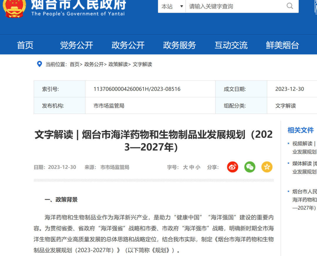 烟台发布海洋药物和生物制品业发展规划
