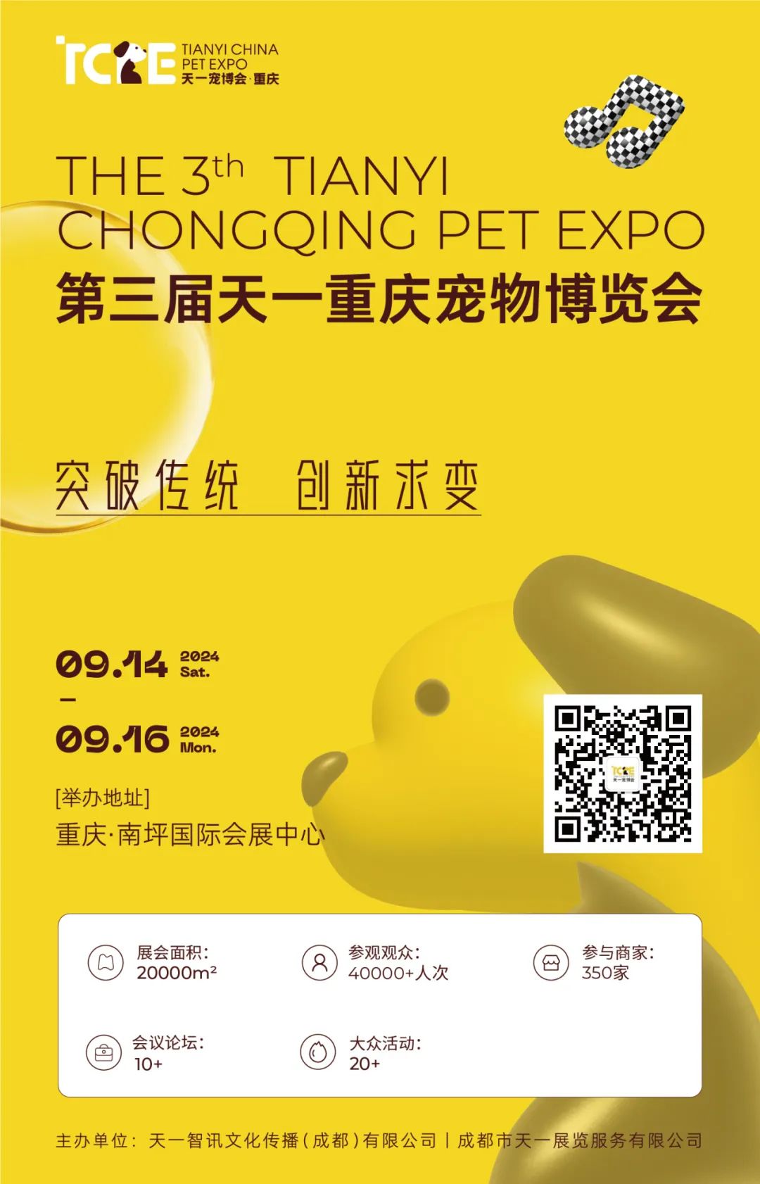 成都天一展览成立于1999年,是一家专业从事展览策划与组织的会展项目运营商。有一套完善的展会运作模式。天一宠博会创办于2011年,团队由一群热爱生活,热爱宠物的年轻人组成。希望通过每年的创新,让各位宠业人感受到展会的魅力。