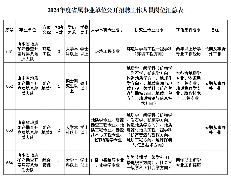 【公开招聘】欢迎报考山东省地质矿产勘查开发局第八地质大队