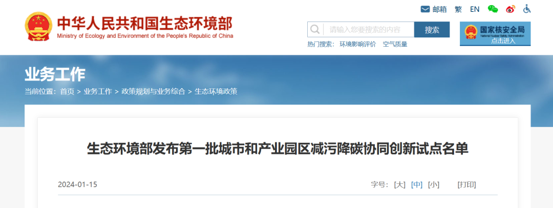 为深入贯彻党中央、国务院关于开展减污降碳协同增效工作的决策部署和全国生态环境保护大会精神,生态环境部会同相关部门积极推动《减污降碳协同增效实施方案》重点任务落实,加快形成协同推进工作格局,进一步推进减污降碳协同治理,工作成效日益显现。当前,生态环境部正稳步推开城市和产业园区减污降碳协同创新试点工作,综合各省(自治区、直辖市)生态环境部门推荐、专家评审意见等因素,筛选形成了第一批城市和产业园区试点名单,持续推动减污降碳协同创新试点工作扎实开展。