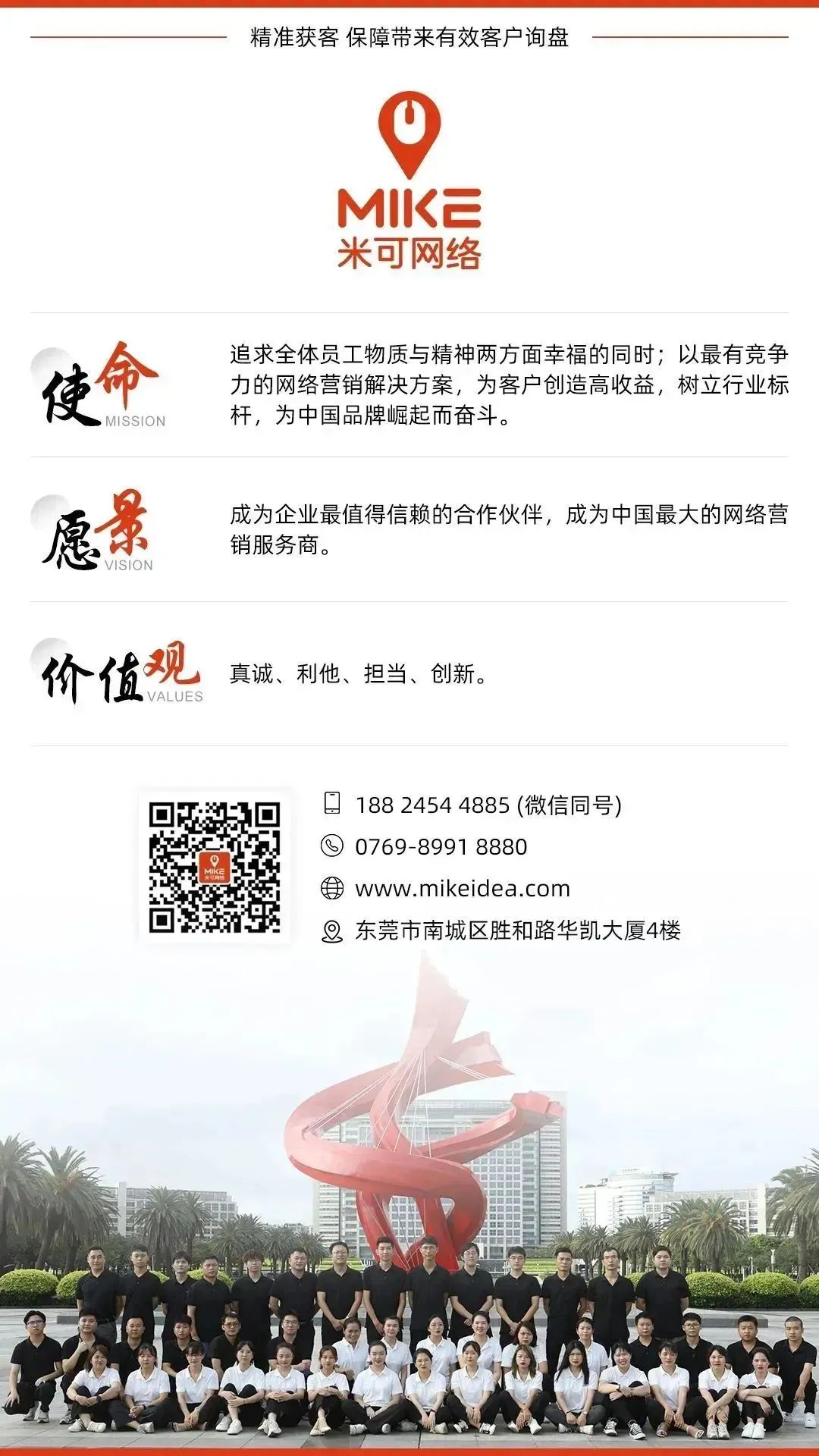广东米可信息技术有限公司(以下简称米可网络)是为中小企业提供有效的网络有效解决方案的网络公司,成立于2007年,50人 团队,40人售后服务及运营,总部在南城,办公场所1200方。