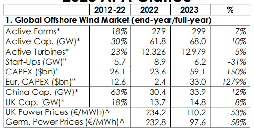 Clarksons总经理Steve Gordon表示:“2023年对离岸风电行业来说是动荡的一年,因为它面临通胀压力。美国计划的至少13吉瓦容量受到了影响,其中9.7吉瓦的收购合同被取消或面临取消的风险,而英国约7吉瓦的容量也受到影响。”