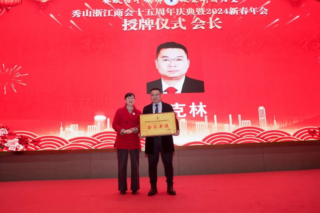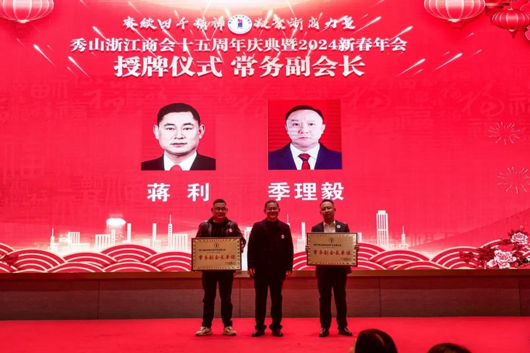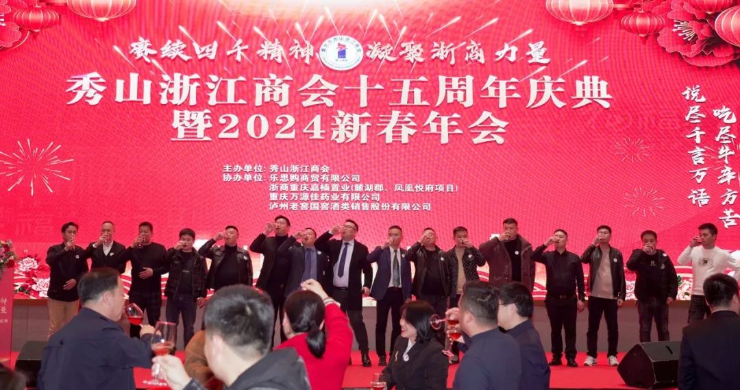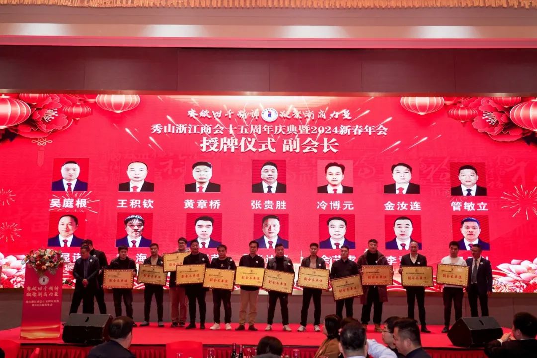 赓续四千精神,凝聚浙商力量。1月15日下午,秀山浙江商会十五周年庆典暨2024新春年会在豪生大酒店隆重举行。秀山县委常委、县委统战部部长林成芳、秀山县委统战部副部长、县工商联党组书记杨华、秀山县委统战部常务副部长黄应超、商会全体会员企业及县级各部门领导嘉宾、浙江在秀乡贤、友好兄弟商协会、合作单位等300余人欢聚一堂,共同见证此次盛况。