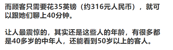 她也明白,很多顾客的年龄都很大,通常都三四十岁了,甚至也有她父亲那个年龄段的人来找她。