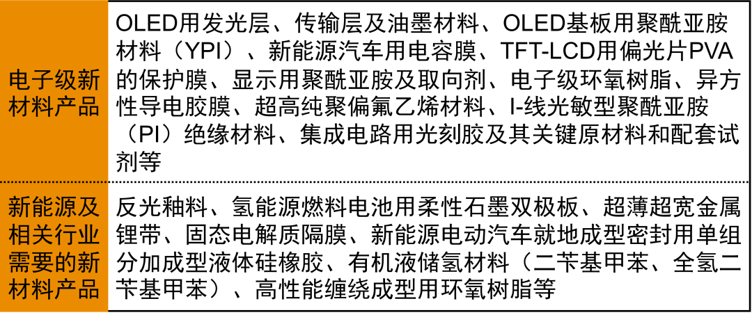 重点产品指导目录中的产品,可以粗略分为电子及新能源行业需要的新材料产品。