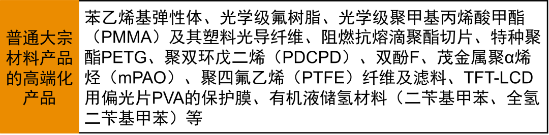 普通材料的高端化,也是本次发布新材料范围重要方向。