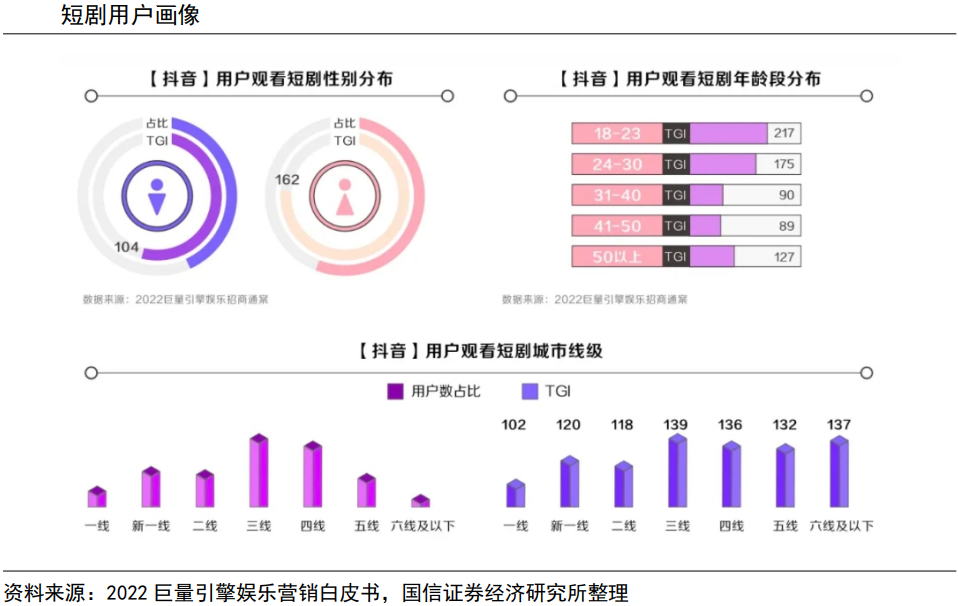 短剧的迅速发展是供给和需求双方共振的推动结果。产业上游创作端大爆发,据德塔文数据,2022年10月1日-2023年8月31日长短视频平台上线微短剧超千部,这也是微短剧年产量首度破千,分账总金额更是突破两亿,超越近三年分账金额总和。在经历了萌芽、发展期后,随着广电总局从11月开始持续开展网络微短剧治理工作,行业由粗犷式发展向成熟和精品化迈进,行业内头部企业也逐步开始布局,各大长短视频平台纷纷入局,各大制作公司、MCN机构也积极加入短剧赛道;需求方面短剧顺应用户碎片化娱乐习惯,用户数量和播放量实现增长。