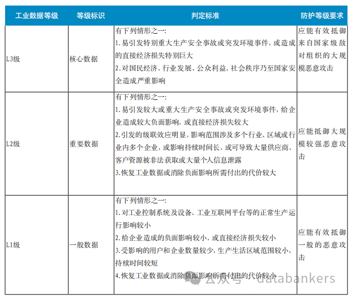表4 工业数据分级分类判定标准和防护等级要求