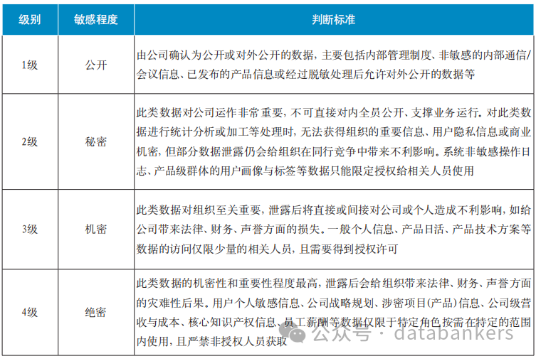 数据分级是指在数据分类的基础上,根据数据的敏感程度和数据遭到篡改、破坏、泄露或非法获取、非法利用后对受害者造成的影响程度,将数据按不同级别划分,从而实现数据的差异化保护。数据分级更多是从安全合规性要求、数据保护要求的角度出发,我们称之为数据敏感度分级更为贴切。
