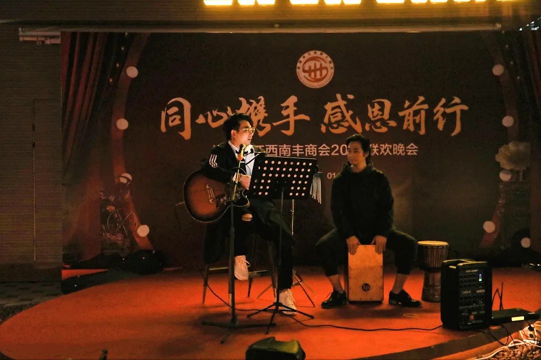 晚宴期间,商会会员们多才多艺,我会理事芦敏的吉它弹唱、执行委员李飞的激情演唱、李胜的萨克斯独奏,秘书夏沫的朗诵,一场精彩绝伦的文艺演出将年会推向高潮,游戏环节更是让人激动不已。
