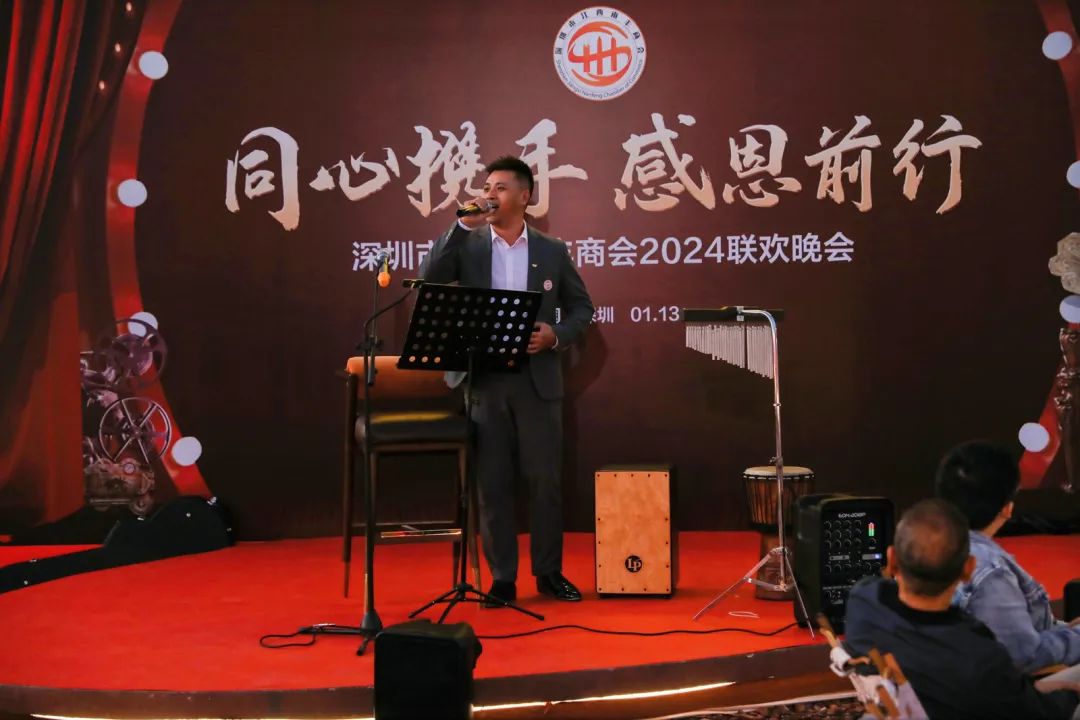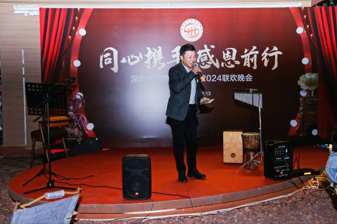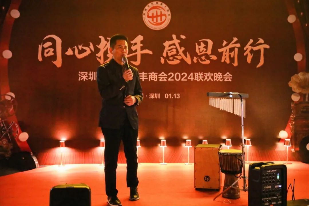 深圳市江西南丰商会会长顾长飞致辞,首先对各位的光临表示热烈的欢迎和衷心的感谢,向支持建设商会的各位会员、以及会员家属致以新年的问候和祝福!他表示,深圳南丰籍企业家们怀揣梦想,在深圳这片沃土打拼、发展、扎根,商会是南丰籍企业家的共同家园,也是联系深圳与家乡经济社会发展的桥梁和纽带。他回顾,六年来一路走来的足迹,商会取得的每一份成长,都包含着全体会员的辛劳和汗水;收获的每一点进步,都凝聚着全体班子的智慧和心血,特别是疫情对于全球经济状况的严重影响,企业不仅要应对同行的内卷,还要帮助客户外卷,也要面对外部环境外卷,他希望,会员企业家们能够紧跟形势,坚守主业,在发展自己的同时,共建资源共享的大平台,努力帮助更多在深老乡顺利前行,群策群力,共创美好的未来。